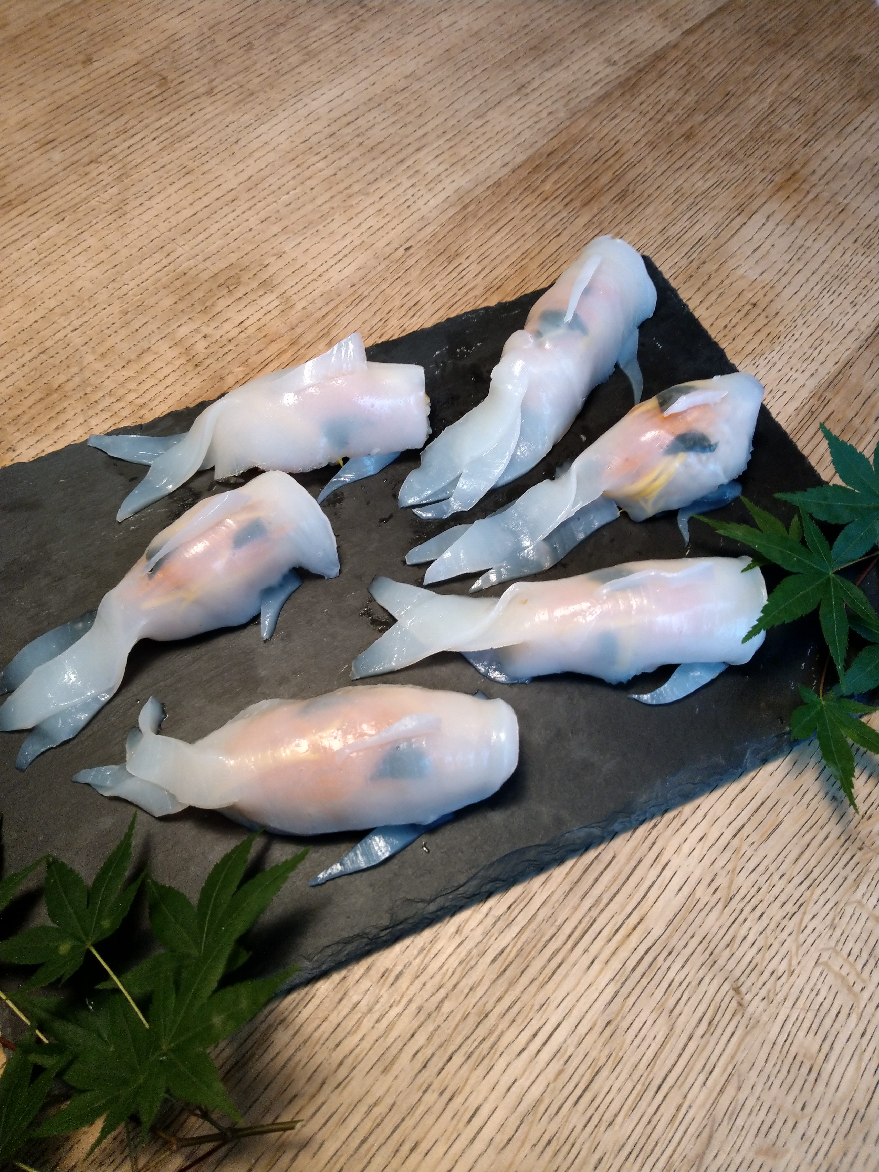 ガラス細工のように美しい飾り寿司は、食の芸術品ともいうべき完成度で、佐伯の職人の技の高さを示しているそう。なかでも「イカで造った錦鯉の姿寿司」は、そのビジュアルからインスタでもブレイクしているのだとか。