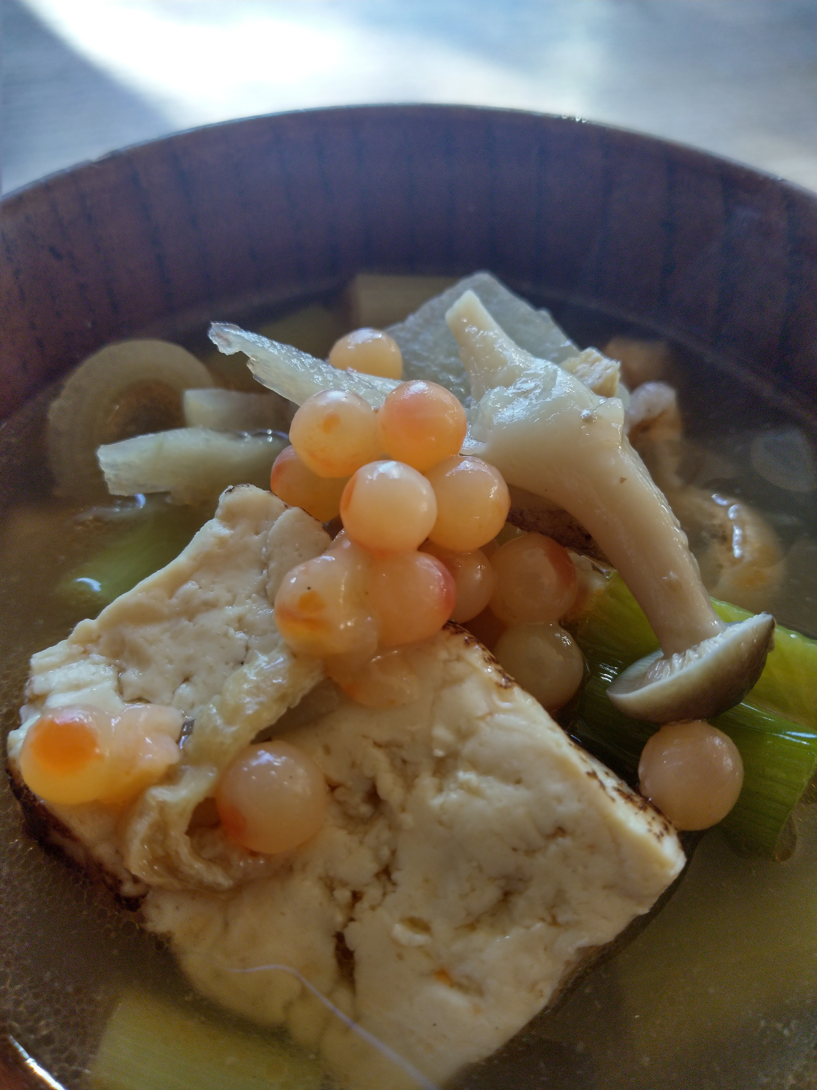 静岡の私の家では、醤油だしに油揚げ、小松菜とおもちというシンプルなお雑煮なんだけど、新潟のお雑煮は超具沢山!