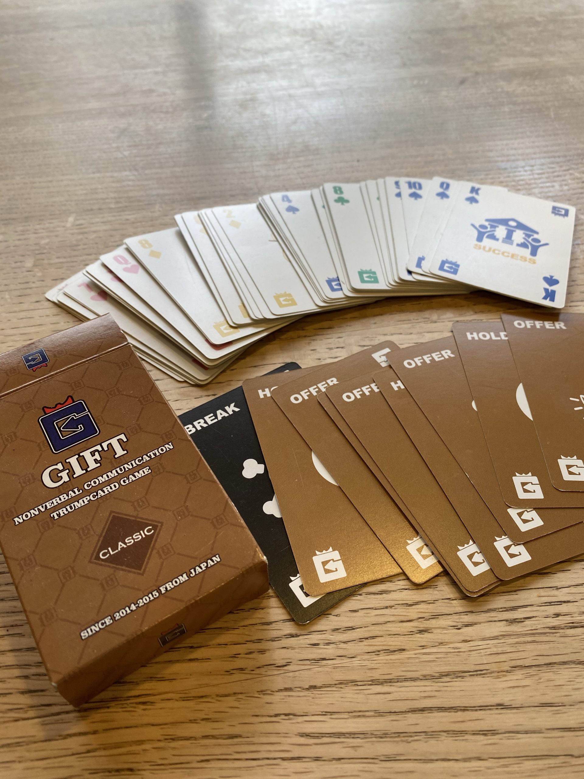 大きく違うのは七並べは一番にカードがなくなった人が勝ちだけど、ギフトは、全員が同時になくなるのが勝ち。