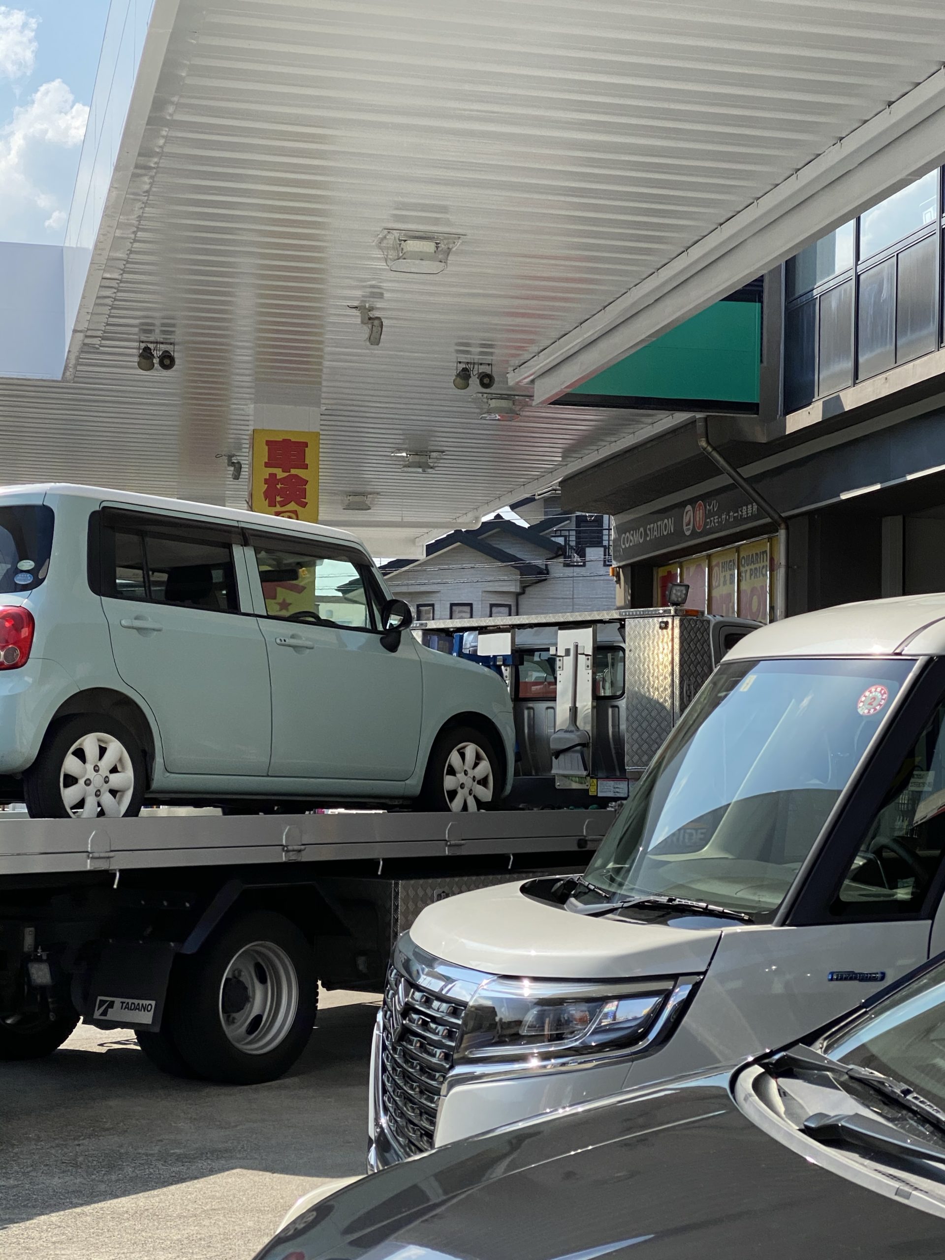 30分後、大きなトラックが到着して、ラパンを修理工場まで連れて行ってくれました。