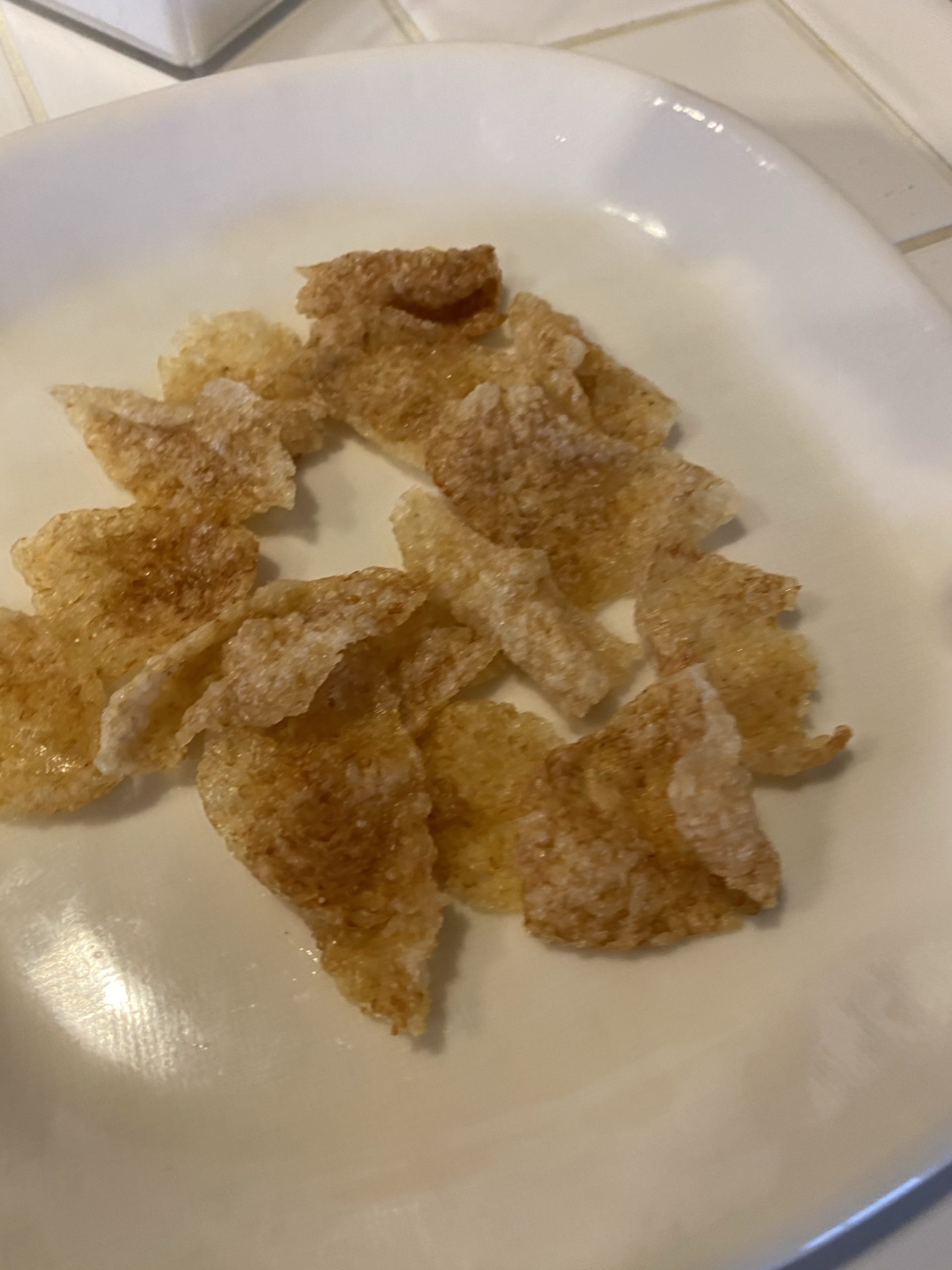 パリパリのチップスが完成!玄米なのでポテトチップスより体に良さそうです。