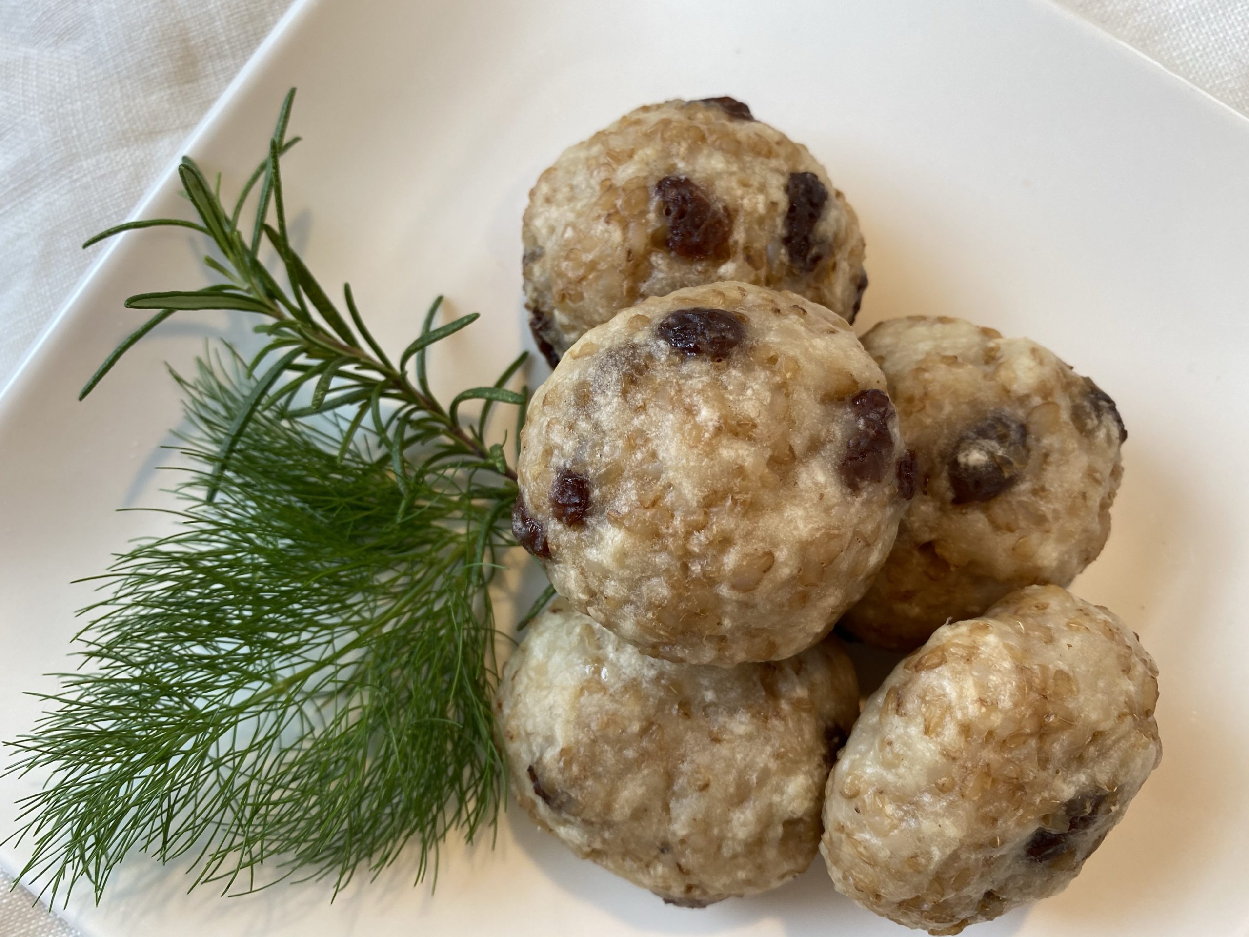④ゴルフボールくらいの大きさに丸めて、180度のオーブンで30分焼く。