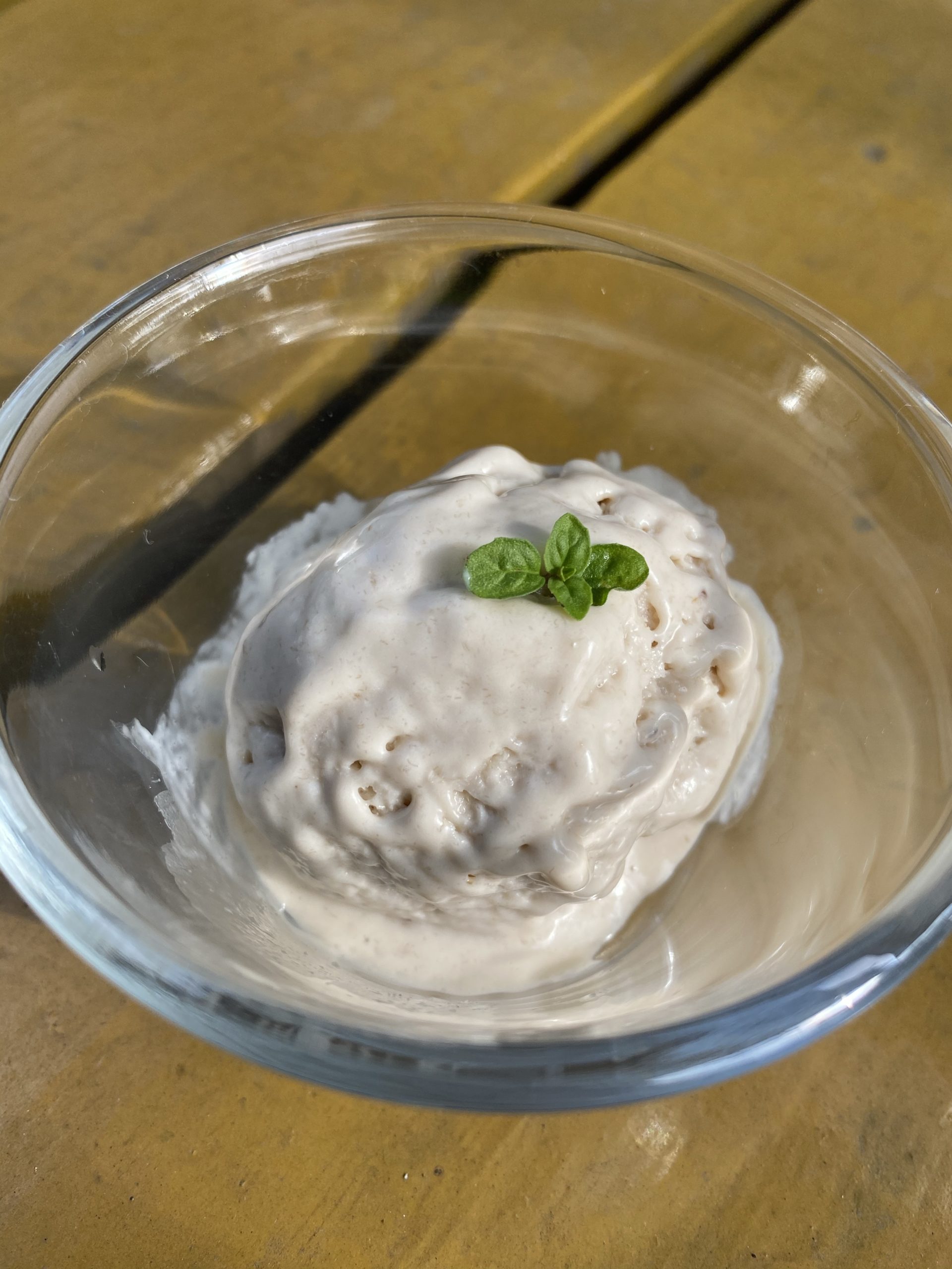 豆乳クリームのコクとバナナで、まるで生クリームが入っているようなすごく濃厚なアイスクリームにできあがります。