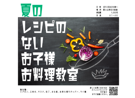 レシピのない料理教室は、食材から自分で選び何を作るか考えるという教室です。自分一人で何もかも自由に判断することって現代の子供は中々経験できないので、いい機会になるんじゃないかなーと思って企画しました。