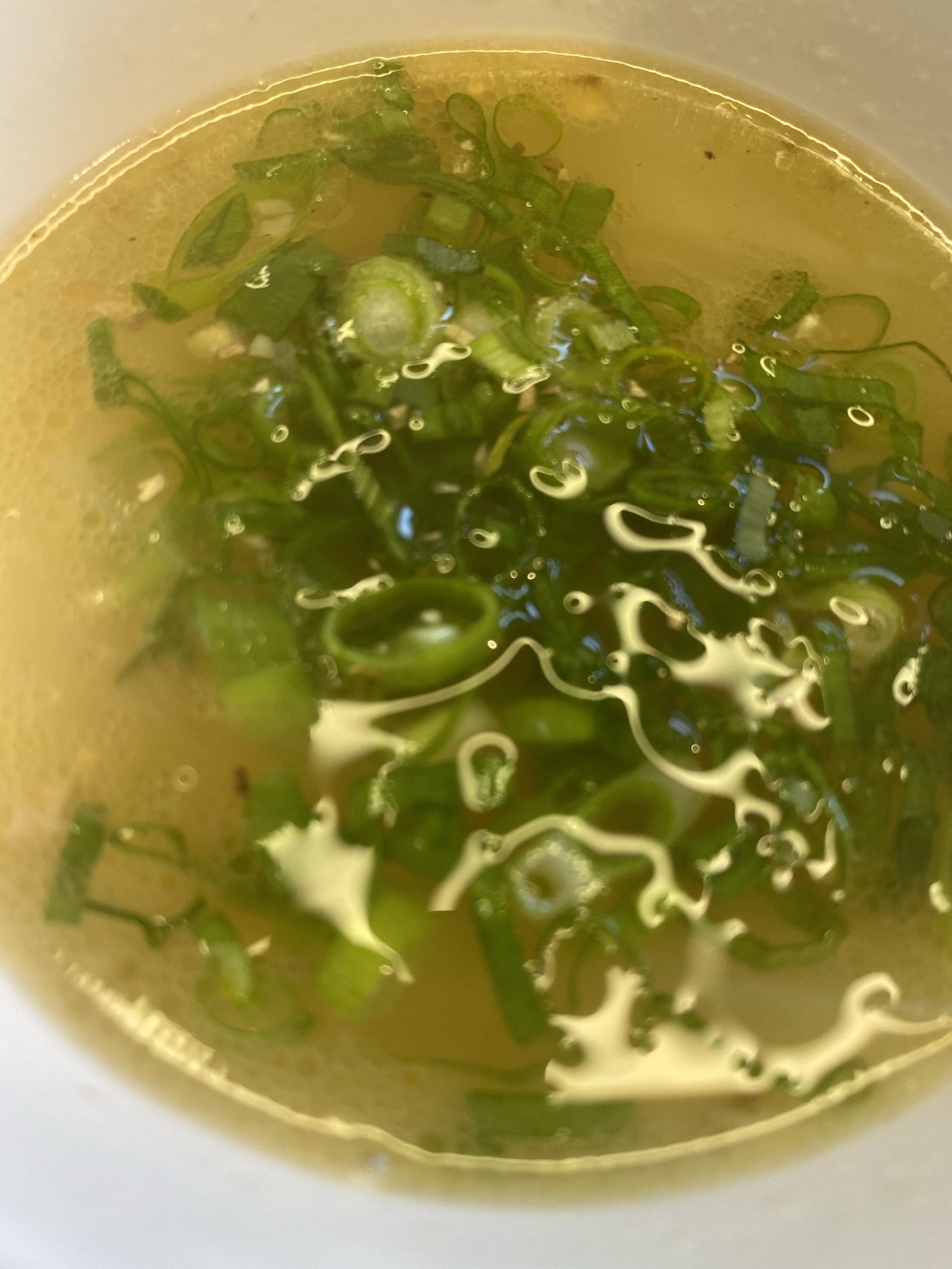 3.醤油と塩で味をつけ、食べる直前に生姜のみじん切り大さじ山1を加え器によそって、青ネギの小口切りをたっぷりのせる。