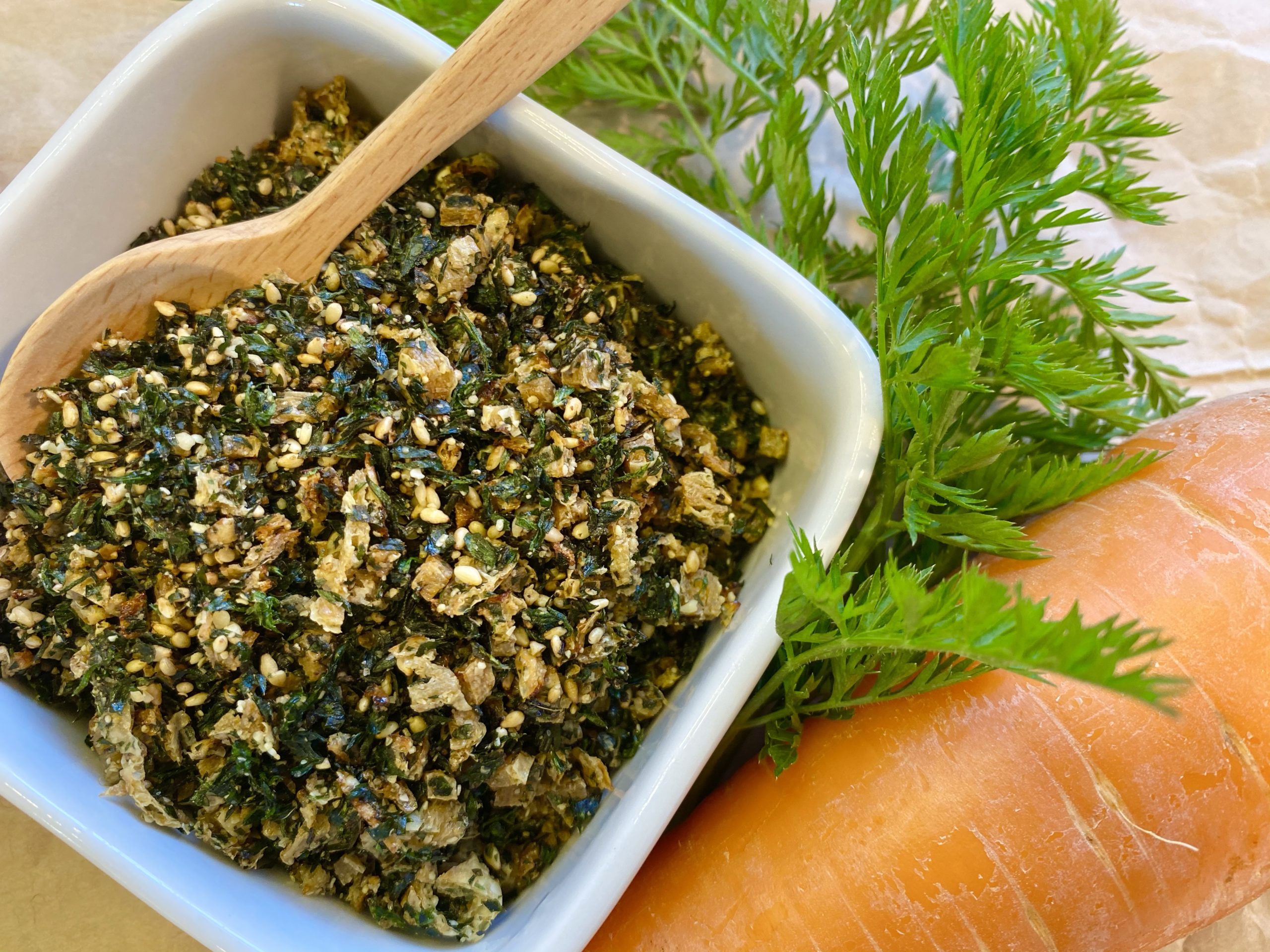 あったかいごはんにかけたり、おむすびに混ぜたり、チャーハンに入れてもおいしいです。ビタミンやカルシウムがたっぷりの人参葉のふりかけ、ぜひ試してみてくださいね!