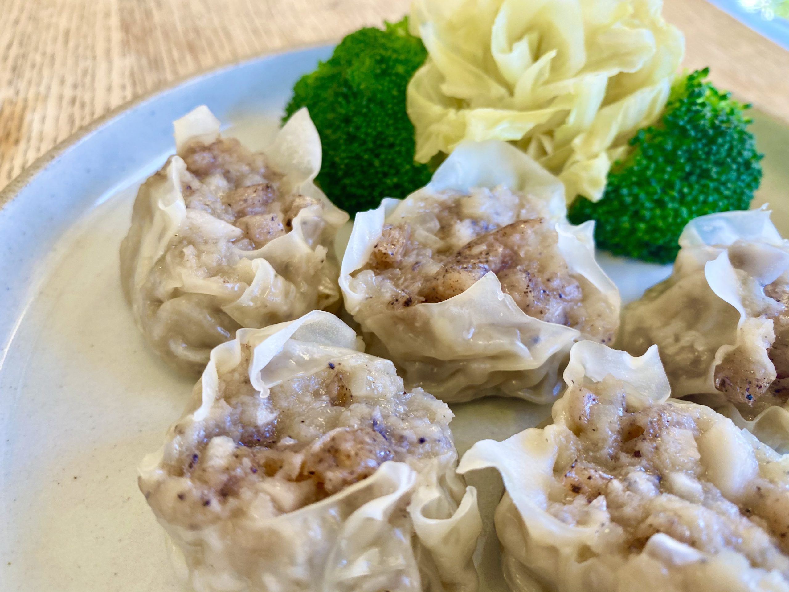 もちもちしたれんこんの中に、刻んだれんこんのシャキシャキとこんにゃくのプリプリが入っていて、たくさんの食感が楽しいしゅうまいです。