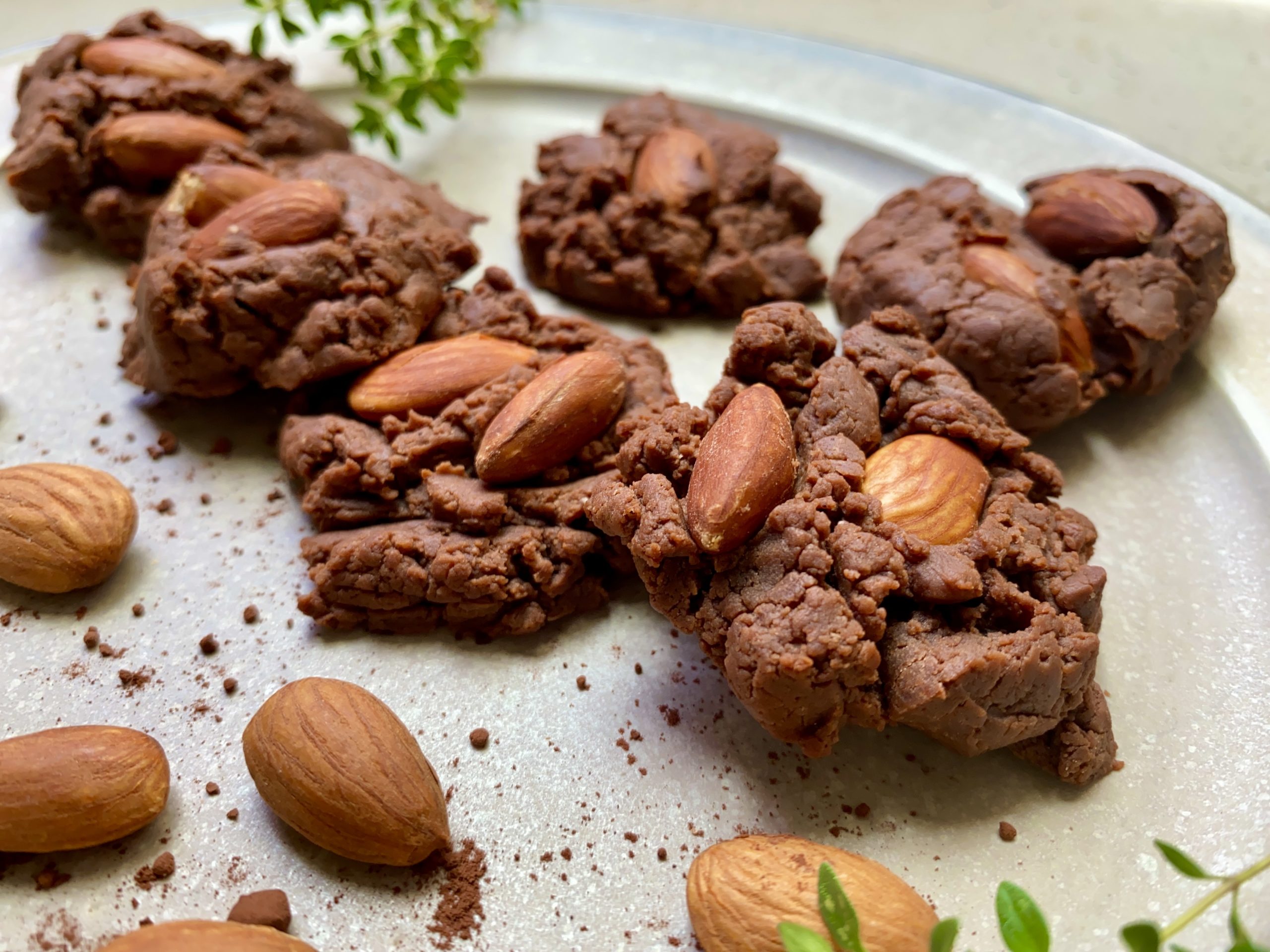 ナッツの香ばしさがたまらない、カントリーマァム風ソフトクッキーが米粉で出来ました。外はカリカリ、中はしっとりふんわり。チョコの代わりにたっぷりのココアとアーモンドを入れました。作りやすい分量&レシピです!