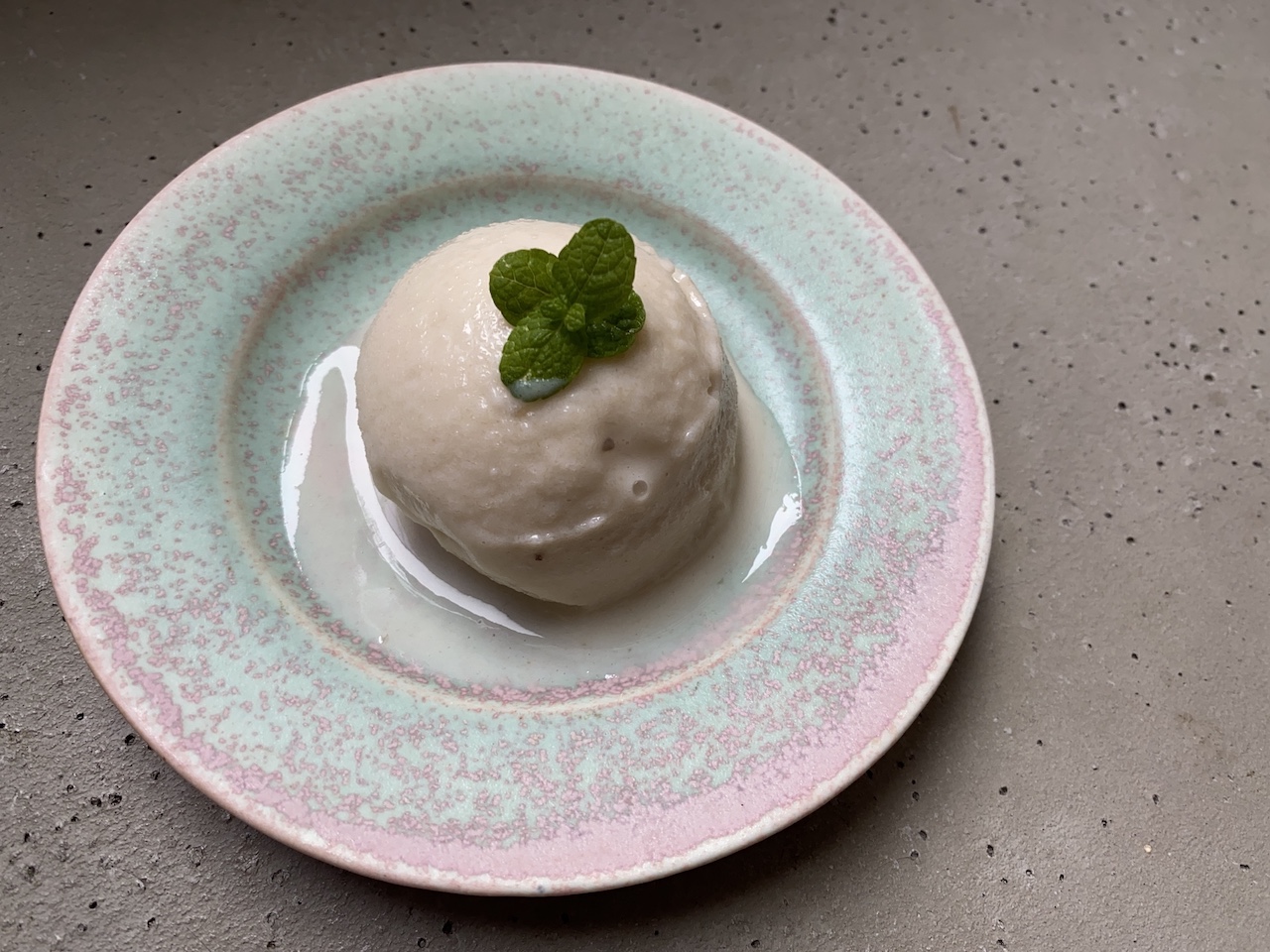 甘酒と豆乳ヨーグルトとフルーツの酸味で甘酸っぱいさわやかなシャーベットになりました。