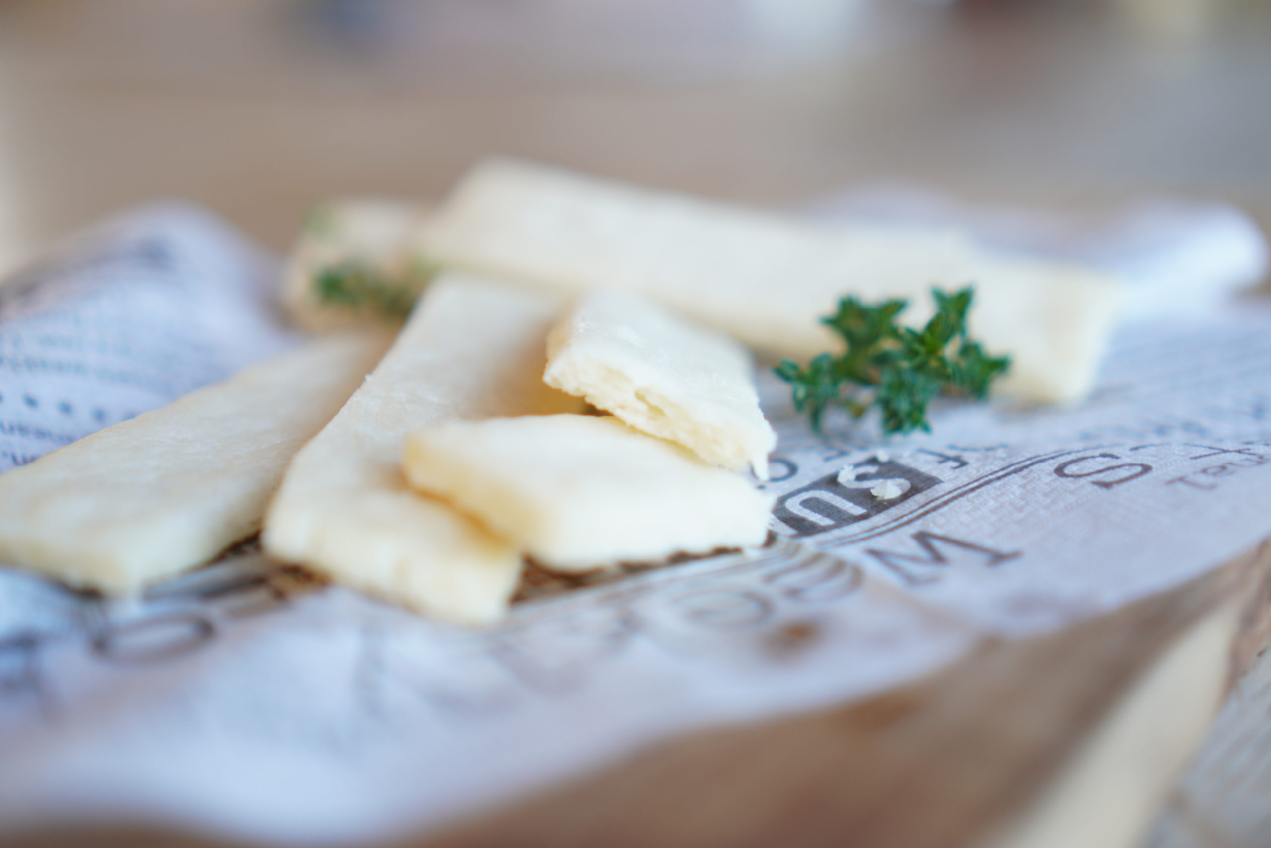 ⒌幅1.5cmにカットし180度で20分焼く。