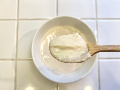 ⒋20℃以上の室温でしばらく放置。ときどきかき混ぜる。夏ならひと晩でプツプツと泡が立ち発酵し始める。ヨーグルトメーカーがある人は35度で24時間設定で作れます。1~3日経ったらガラス瓶に移し替えて冷蔵庫で保存する。冷蔵庫で2週間くらい保存可。