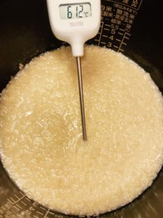 3. 3と米麹、水を混ぜてヨーグルトメーカーなどで60度に保温して8時間おく。粒が気になる方はブレンダーで滑らかにしてできあがり。