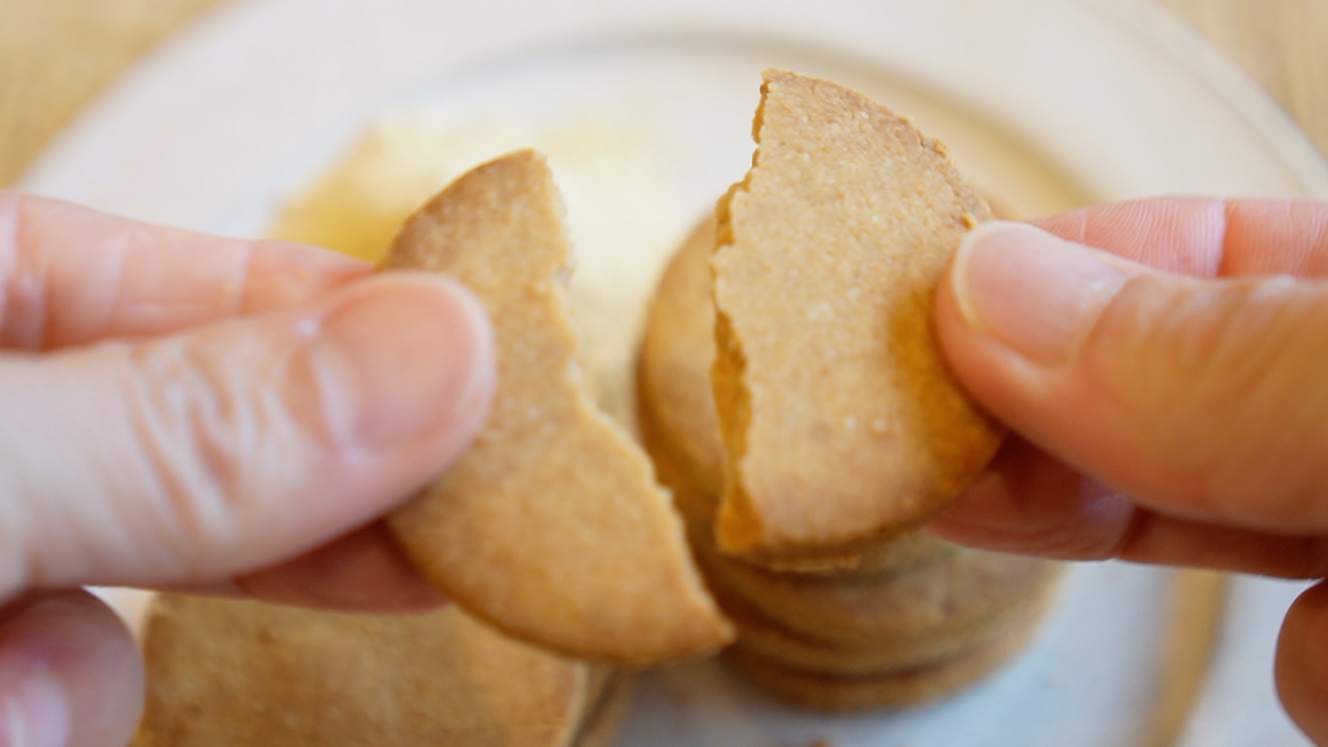 ⒊5mm厚さに伸ばし、好きな型で抜いたら、170℃に予熱したオーブンで20分焼く。