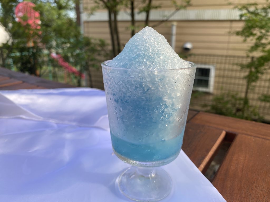 青いお茶「バタフライピー」でかき氷!不思議!レモン汁で色変!