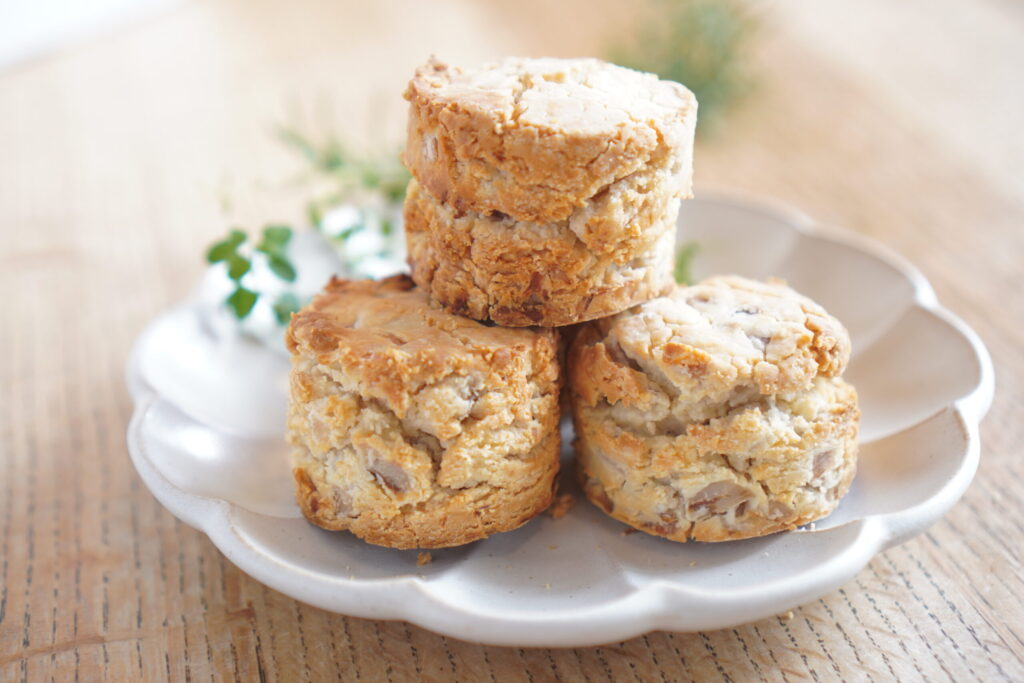 蓮根の美味しい季節になりました。 蓮根ってお菓子にはあまりしないですが シャキシャキとクセのない食感は スイーツにも相性がいいのです。 そこで今回は蓮根を入れた 米粉のスコーンを紹介します。 梅酢で煮た蓮根がまるでドライフルーツのようで ほんの... -
