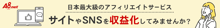 [speech_bubble type="ln" subtype="R1" icon="tobirapattiri.jpg" name="とびら"]食品、雑貨、化粧品、クレジットカードなどの物販系だと老舗で日本最大級の広告主数を誇る最大手のA8ネットに登録しておけばとりあえずOK。楽天アフィリエイトとかは楽天のIDを持っていれば登録や審査も必要ないので、のぞいてみるのもおもしろいよ。私の紹介している情報系のASPは老舗のインフォカート、最大手のインフォットップを登録しておこう。